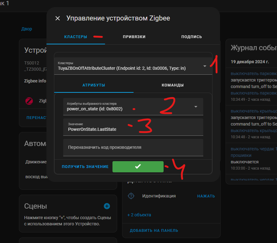 Чтобы реле GIRIER Tuya ZigBee 3.0 не включались после появления электричества, например после его отключения,
